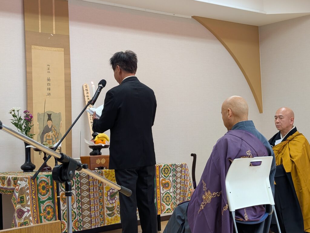 本来なら粟ヶ岳の山頂で行われるのですが、今年は天候の都合で会場を変えて東山地域生涯学習センターにて実施。それでも、会場には約40名が集まり、静かに手を合わせながら、今年のお茶づくりが無事に進むよう祈りを込めました。